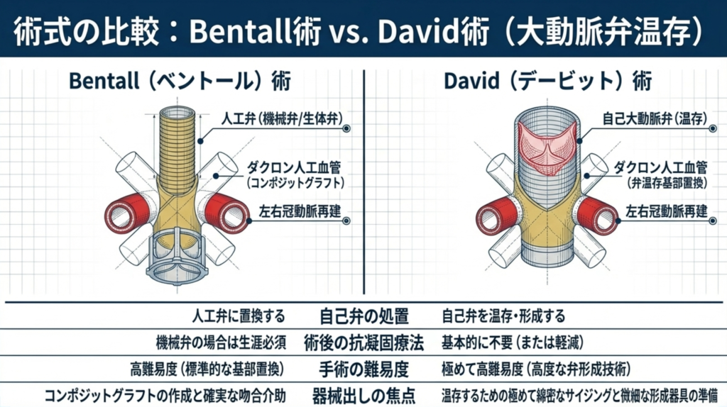 ✅ Bentall(ベントール)手術と大動脈弁温存大動脈基部置換術(デービット手術)の違い