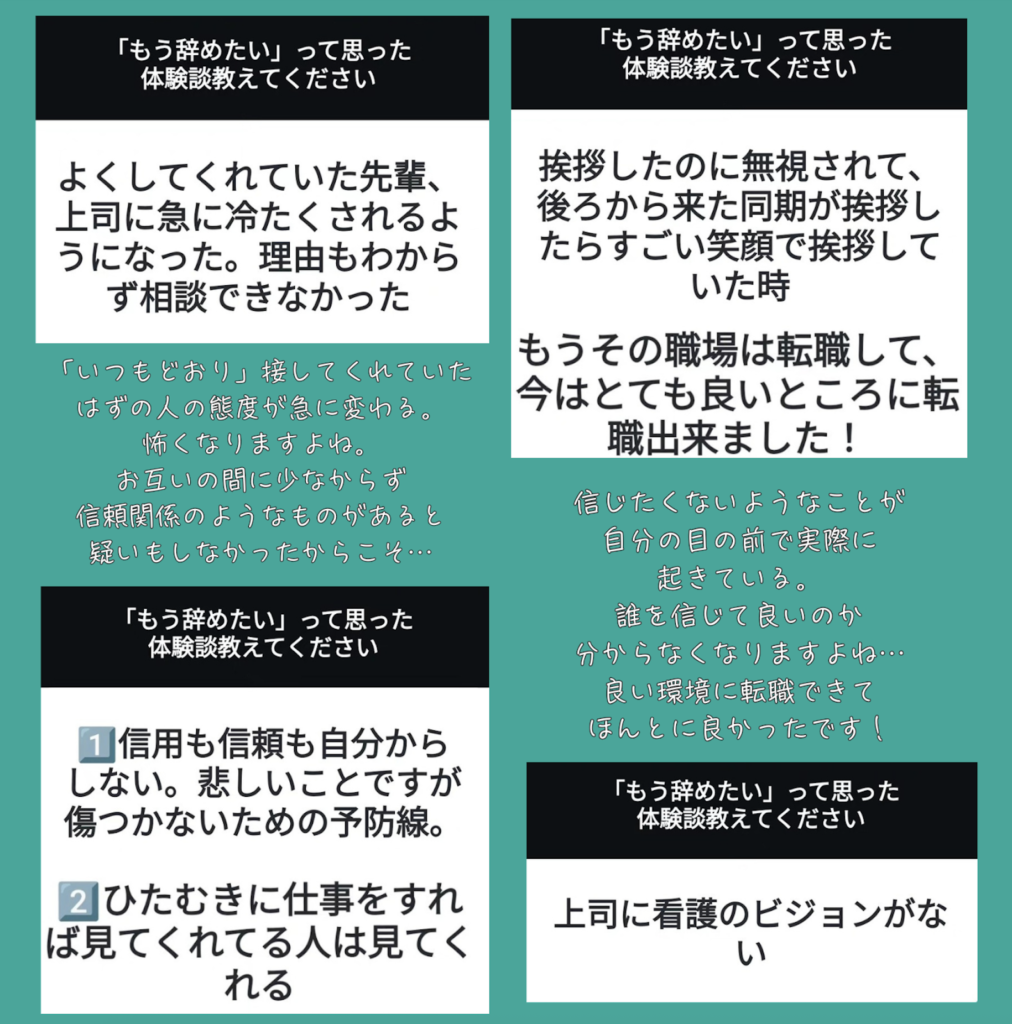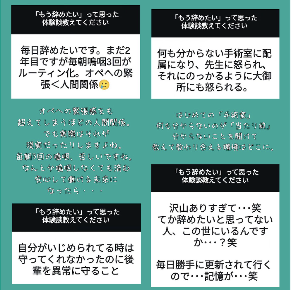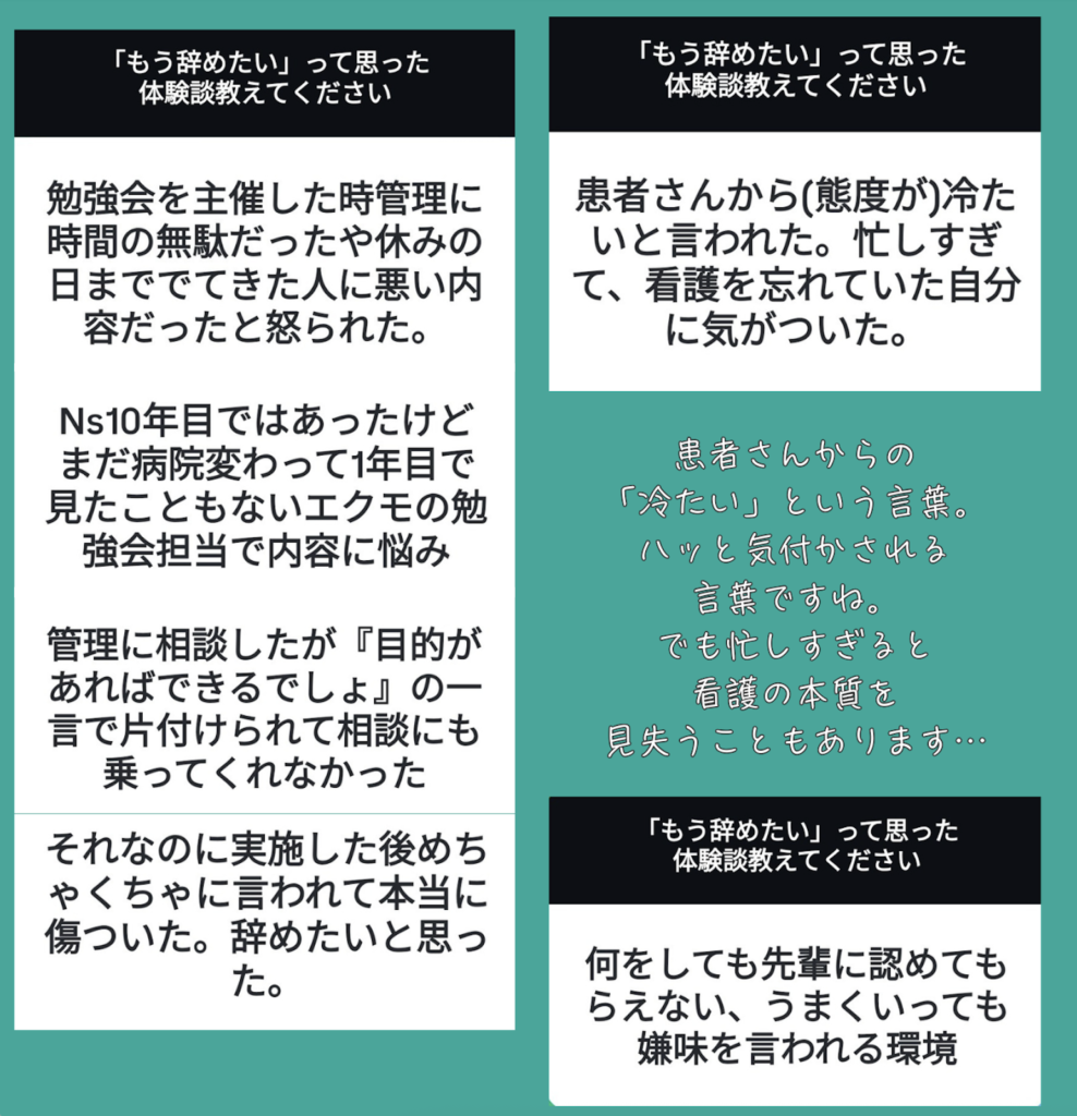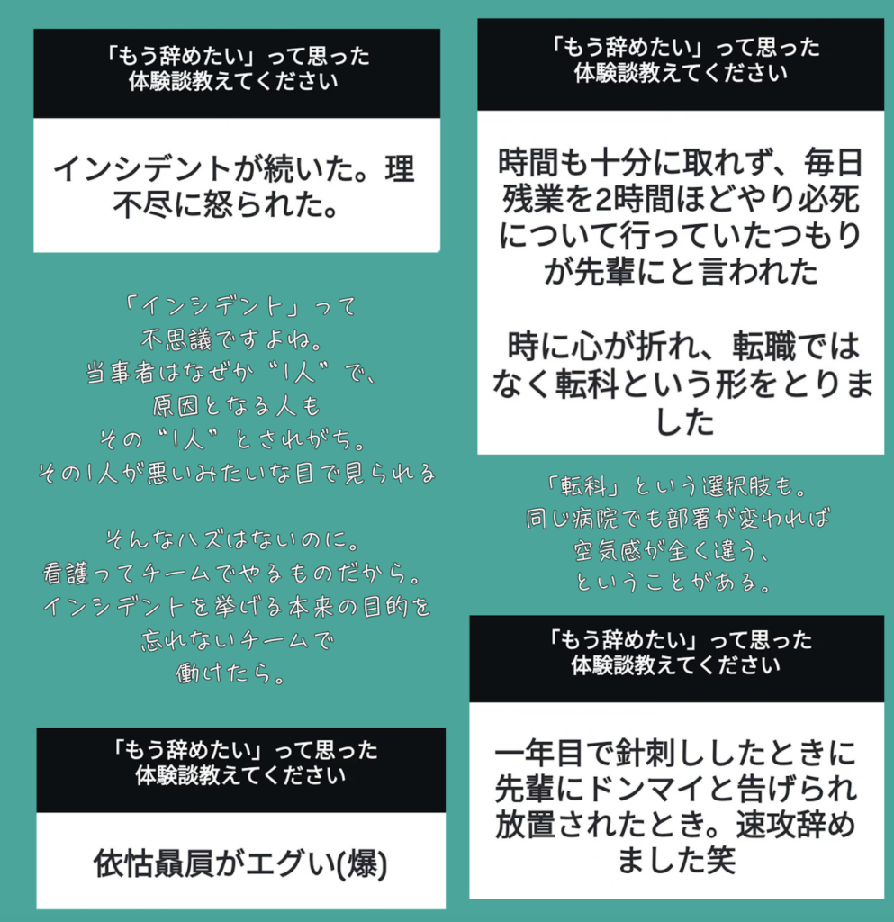 以下の回答はオペ看めろんInstagramに寄せられた回答です。※回答の掲載許可は頂いています。