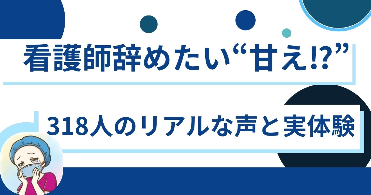 「看護師辞めたい」は甘え!?318人のリアルな回答