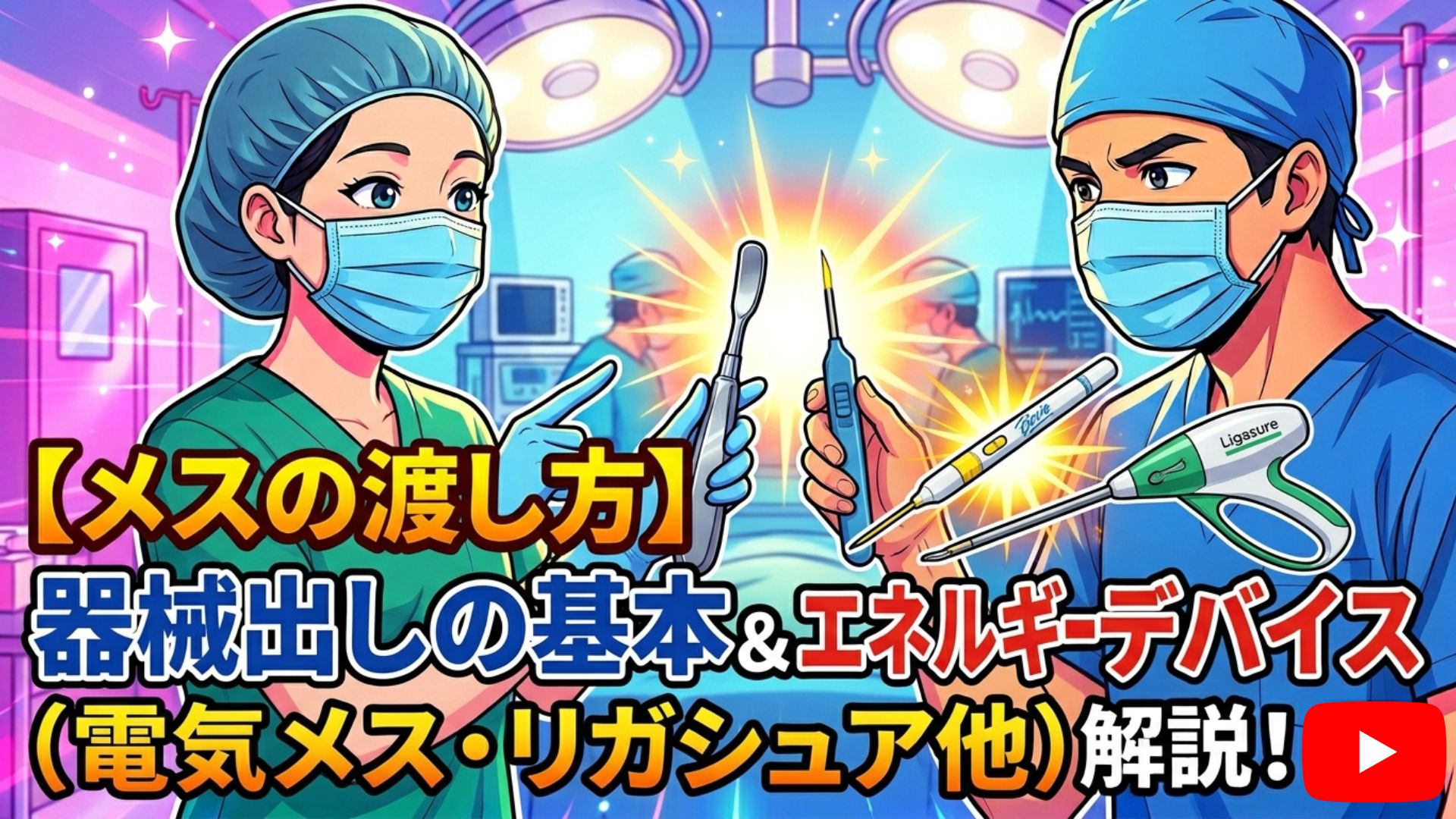 この記事では、メスの基本(円刃・尖刃の違いと安全な渡し方)から、近年欠かせなくなった3大エネルギーデバイス(電気メス、リガシュア、ハーモニック)の仕組みと違いまで、現場で必ず役立つ知識を徹底解説します!